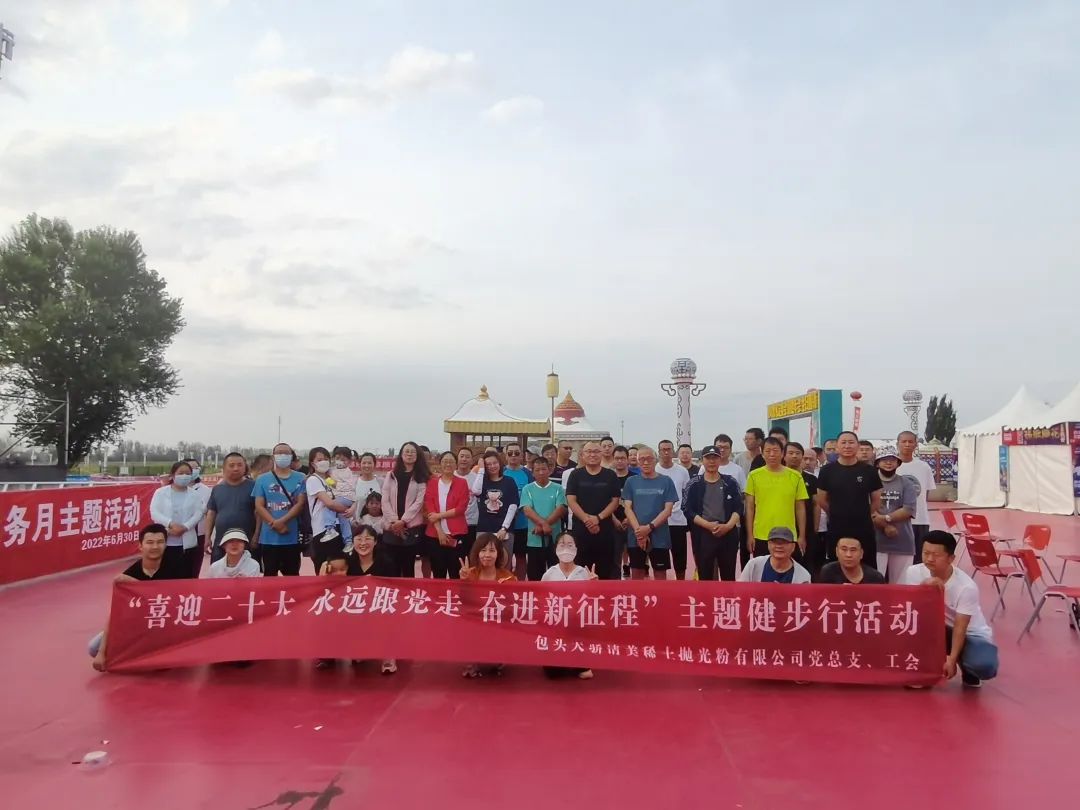 为庆祝中国共产党建党101周年,喜迎党的二十大胜利召开,近日,天骄清美公司工会在赛汗塔拉城中草原组织开展“庆七一·喜迎二十大·永远跟党走·奋进新征程”主题健步行活动。
