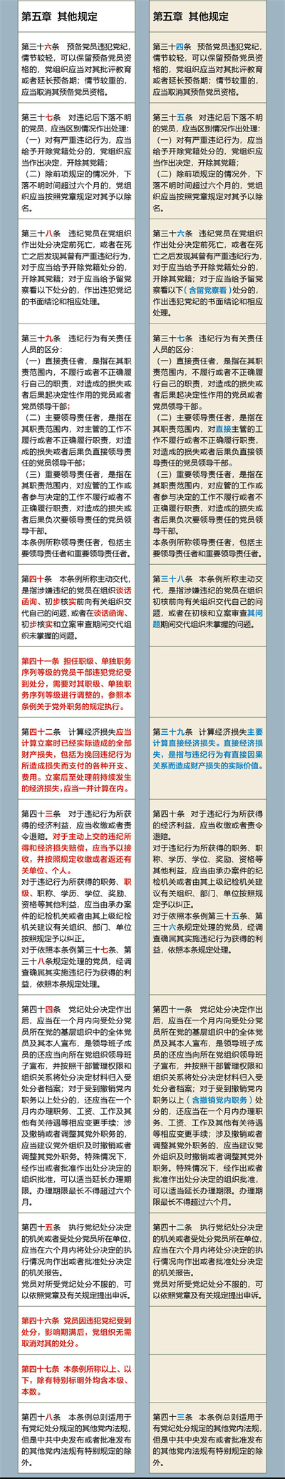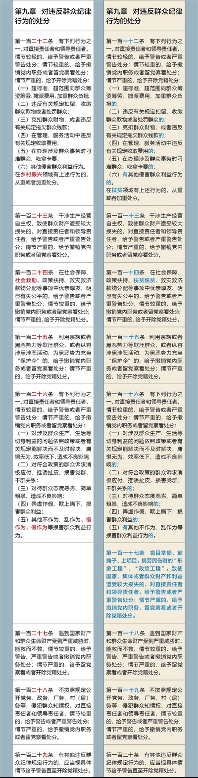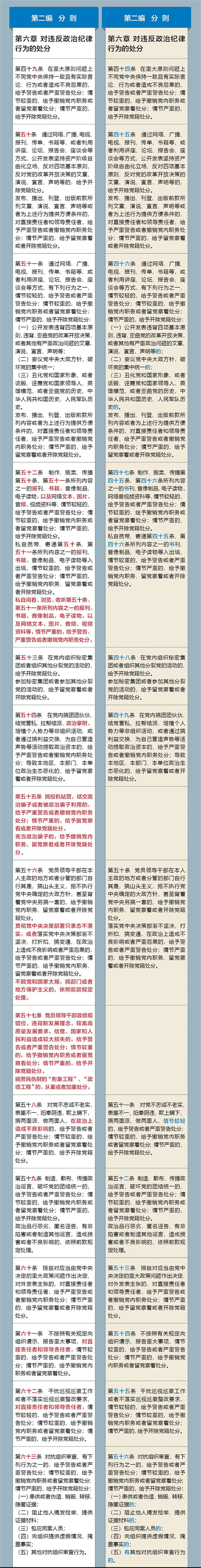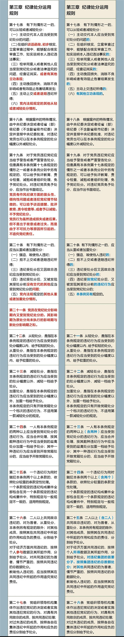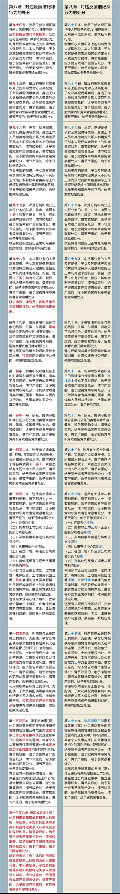 《中国共产党纪律处分条例》修订前后对照表